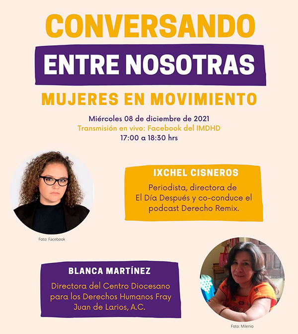 Finalmente, en el tercer conversatorio “Mujeres en movimiento” que tuvo lugar el 8 de diciembre de 2021 con Ixchel Cisneros y Blanca Martínez y el tema central fue cómo han logrado cambios políticos, sociales, culturales, legislativos, etc. siendo parte de diversos movimientos. Ellas han logrado traspasar barreras puestas por una cultura patriarcal. Hablamos de cómo se puede lograr un cambio político desde diferentes lugares.