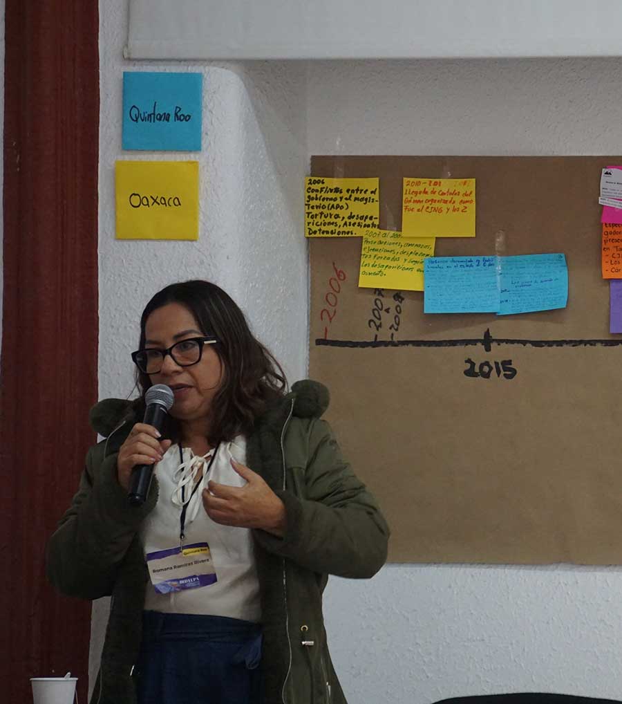 A lo largo de una línea de tiempo colectiva, las y los participantes compartieron cómo la desaparición se ha transformado en sus territorios, los distintos actores involucrados y los obstáculos que enfrentan cotidianamente frente a autoridades omisas, negligentes o directamente cómplices.