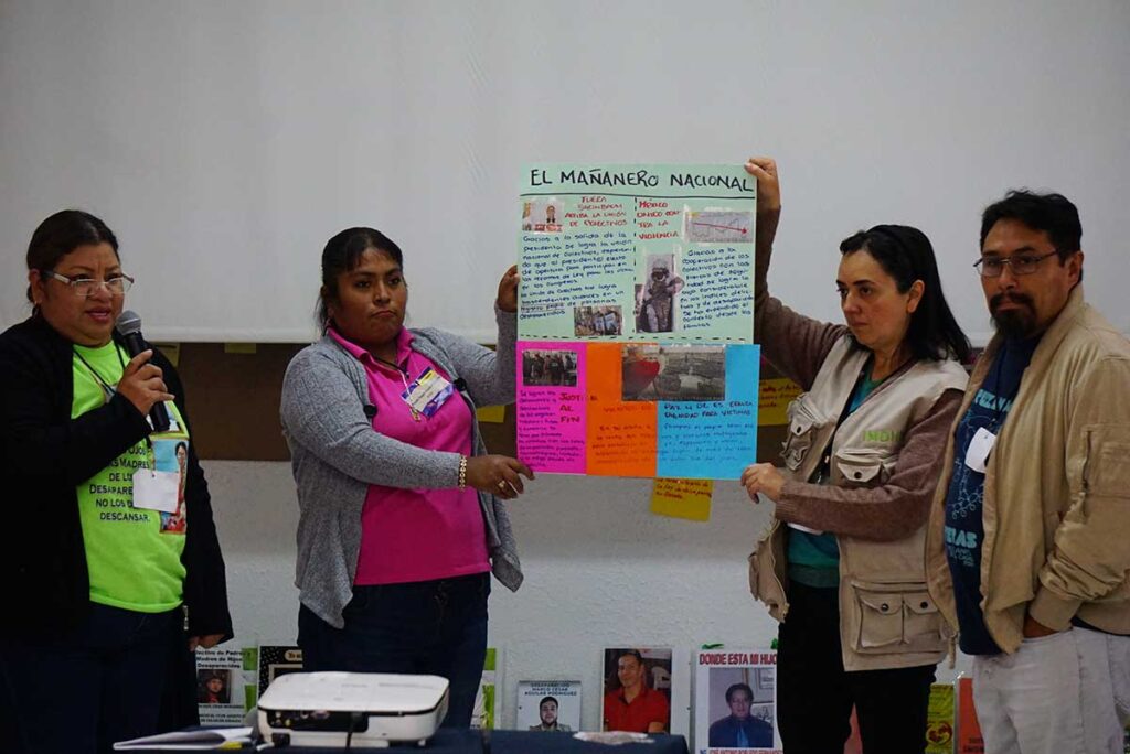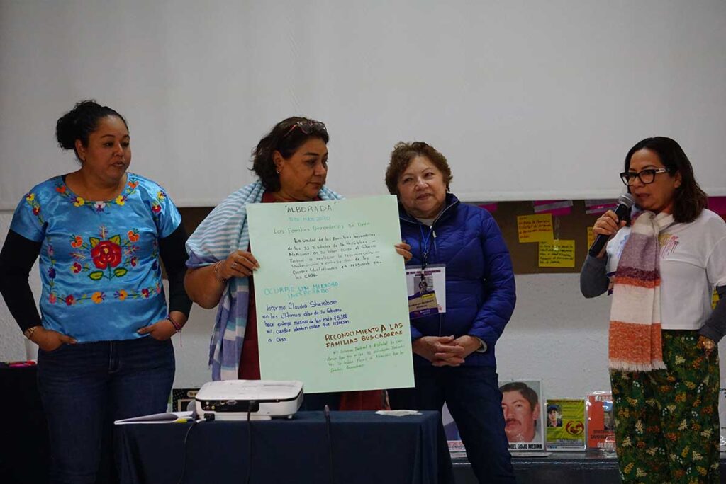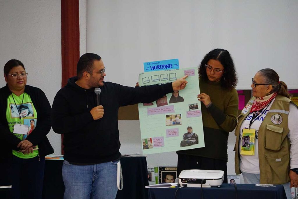 Por ello, uno de los acuerdos fue la necesidad de fortalecer las búsquedas generalizadas en distintos estados, aún cuando las autoridades las limiten bajo el argumento de la falta de líneas de investigación. Para las familias la lógica es otra: “Nuestro familiar puede estar en cualquier lugar, porque así opera la violencia, porque no tiene fronteras”.