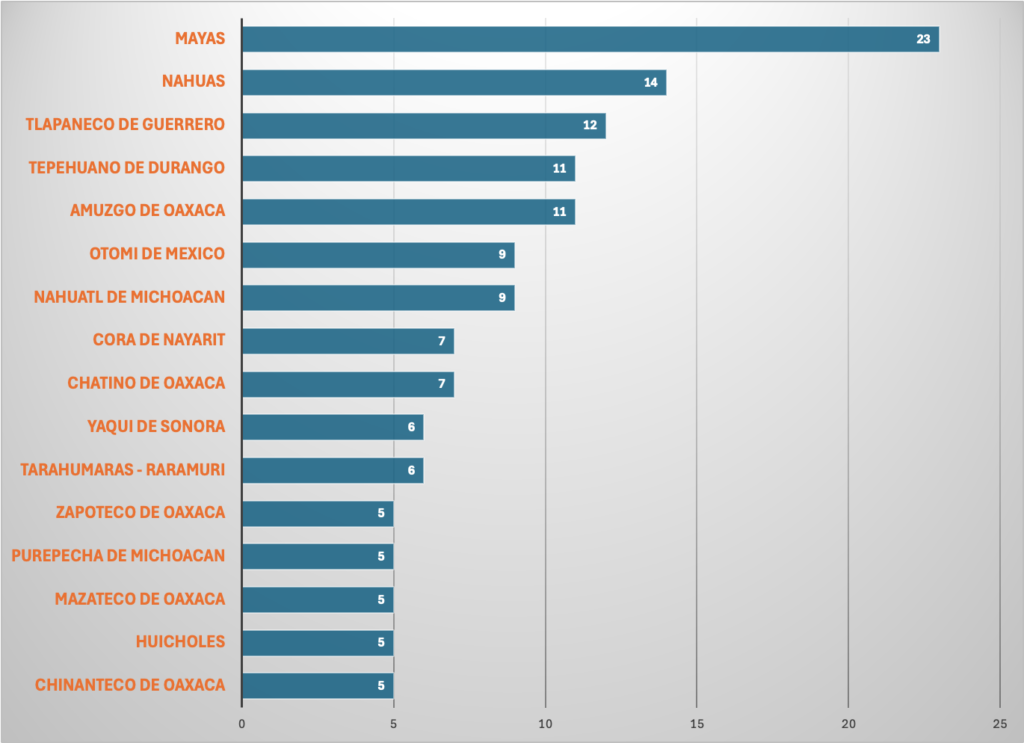 La niñas y mujeres indígenas desaparecidas se concentran en los siguientes pueblos: